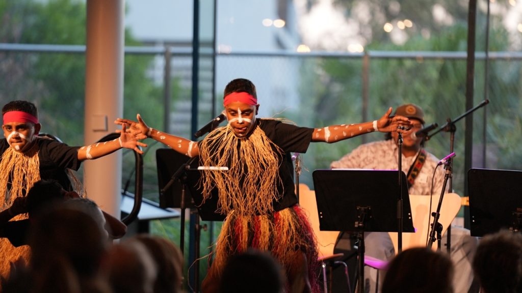 After a warm Welcome to Country from Noeleen Timbery, a respected Elder of the Bidjigal clan of the Dharawal nation, guests were drawn into Meers Hall by live music from the Cape. A performance by the Red Dirt Band filled the room with Cape York sound and swagger, before our Cape York Aboriginal Australia Academy students took the stage, their confidence and joy embodying the reform story in music and motion.